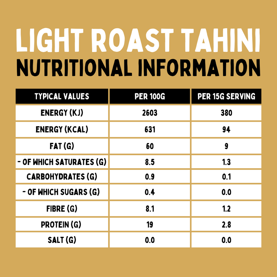 As with all Yumello products, our light tahini is all natural, free from palm oil and good enough to eat by the spoonful!